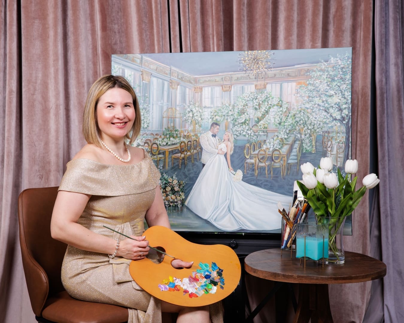 Welcome to the enchanting world of live wedding painting with Olga Pankova, where she paints the scene as it unfolds, freezing time and preserving memories in vivid strokes and colors.